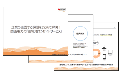 BCP対策・企業価値向上・経費削減など、対策にマンパワーがかかる課題を「蓄電池オンサイトサービス」が解決します。蓄電池の導入による効果や、「蓄電池オンサイトサービス」のサービス体系や特徴をご紹介します。