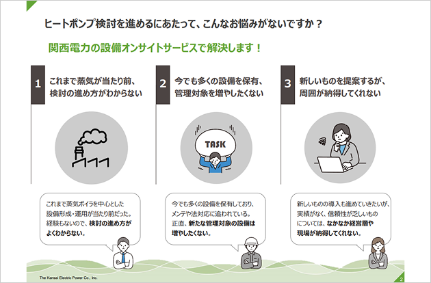 生産プロセスにおける電化設備の導入から運用までまるっとおまかせいただける「設備オンサイトサービス」の概要をご紹介します。
