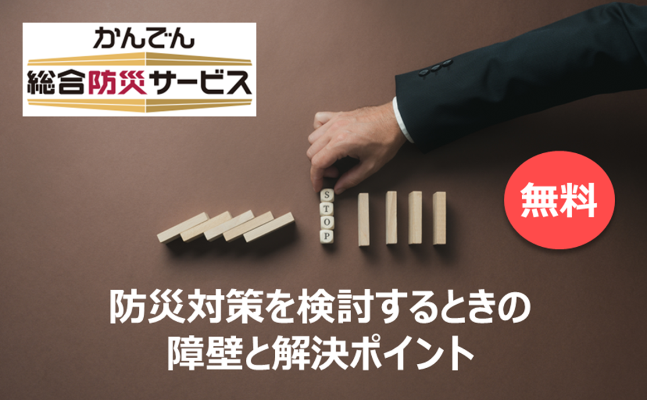 防災対策を検討するときの障壁と解決ポイントを解説。かんでん総合防災サービスの概要と実際のご提案例を分かりやすくご紹介します。