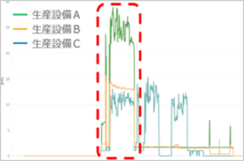 最大電力の発生時間帯を見える化し、生産設備の同時稼働を分散稼働への変更をご提案。
