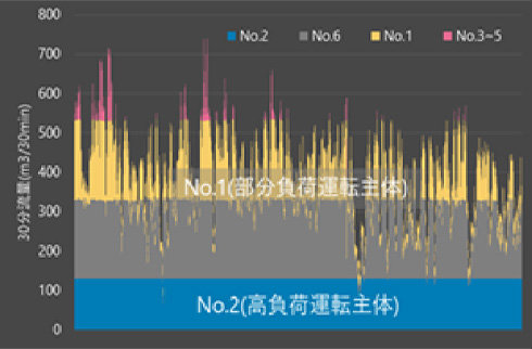 コンプレッサーの稼働状況を見える化し、ベース稼働機器を変更するなどの最適な運用をご提案。