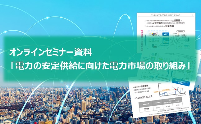 今回は、電力の安定供給に向けた電力市場の動向やVPP・容量市場、また、エネルギーリソースを一括で監視・制御するアグリゲーター(統合する役割)としてVPP事業に参画する関電アグリの取り組みについてご紹介します。