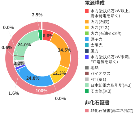 - この電気には、水力、火力、原子力、FIT電気、再生可能エネルギーなどが含まれます。