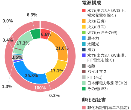 - この電気には、他社から調達している電気の一部で発電所が特定できないもの等が含まれます。