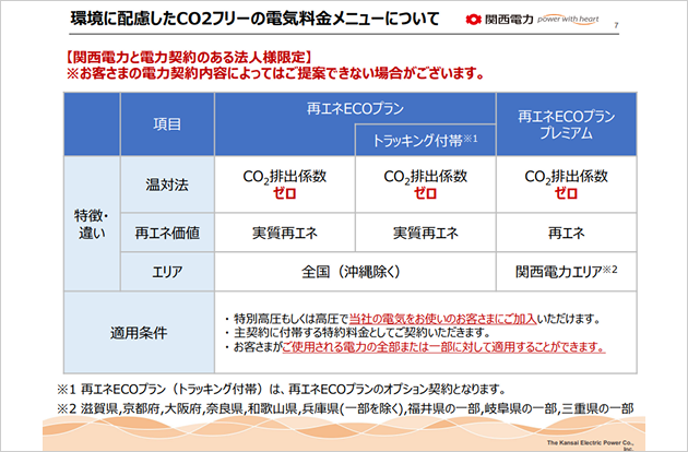CO₂フリーの電気料金メニュー