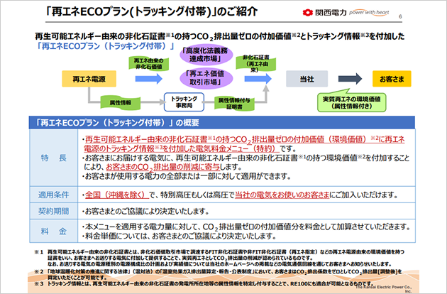 「再エネECOプラン(トラッキング付帯)」 をご用意しております。