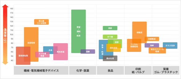 空調設備や給湯設備はもちろんのこと、生産設備に関しても様々な業種のお客さまに対するコンサルティング実績を有します。