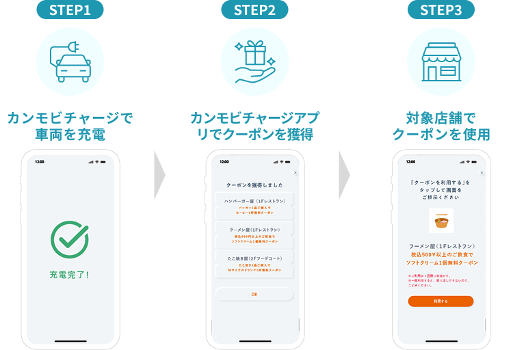 連携店舗ではカンモビチャージアプリを通じて店舗クーポンの配信が可能