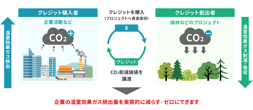 クレジットを購入することで、企業活動に伴うCO₂排出量を、