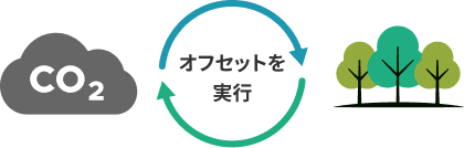 別の場所でのCO₂排出削減・吸収の取り組みによって補うこと(カーボンオフセット)により、