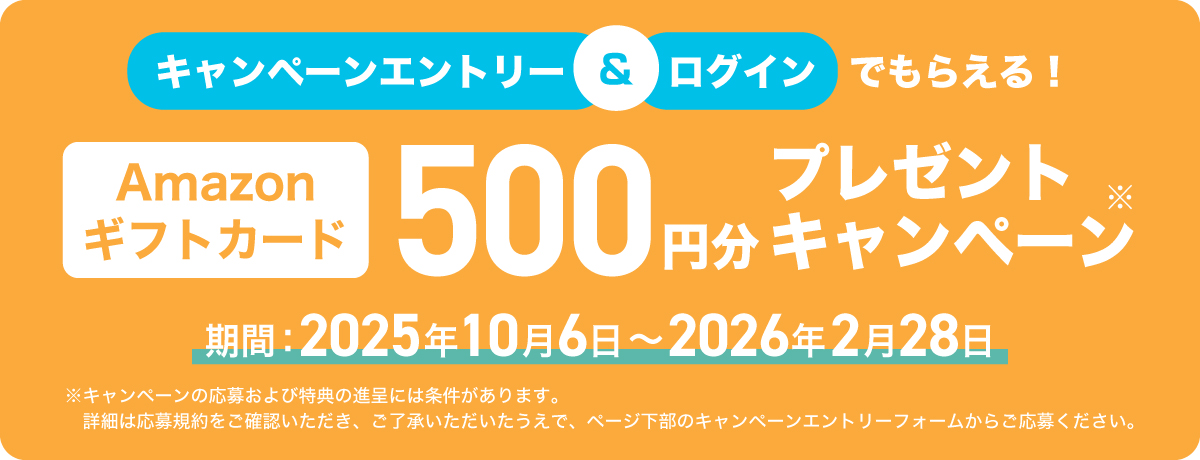 対象期間内にキャンペーンエントリーフォームからご応募いただき「かんでんBiz」会員用ページに1回以上ログインしたお客さまのうち、キャンペーン応募条件および特典進呈条件を満たしたお客さまを対象に、Amazonギフトカード500円分をプレゼントします。