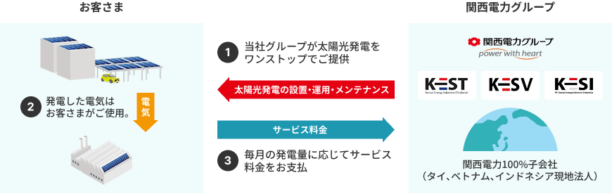 さらに、関西電力100%出資の現地子会社が対応することで、関電品質のサポートを現地にそのままお届けでき るため、安心してご利用いただけます。