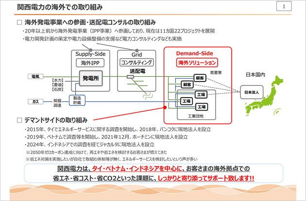 関西電力は、タイ、ベトナム、インドネシアにおいて、100%出資子会社を設立しています。