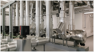 アルコール製造:熱回収コンデンサによりアルコール自体の熱を回収し、その熱で水蒸気を