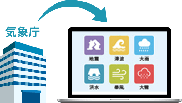気象庁と専用線で直結することで、地震・津波・注意報・警報等のあらゆる気象情報を24時間365日リアルタイムに取得。 地震、警報、注意報等の発生地域について、市区町村単位のメッシュで詳細に配信設定することが可能です。