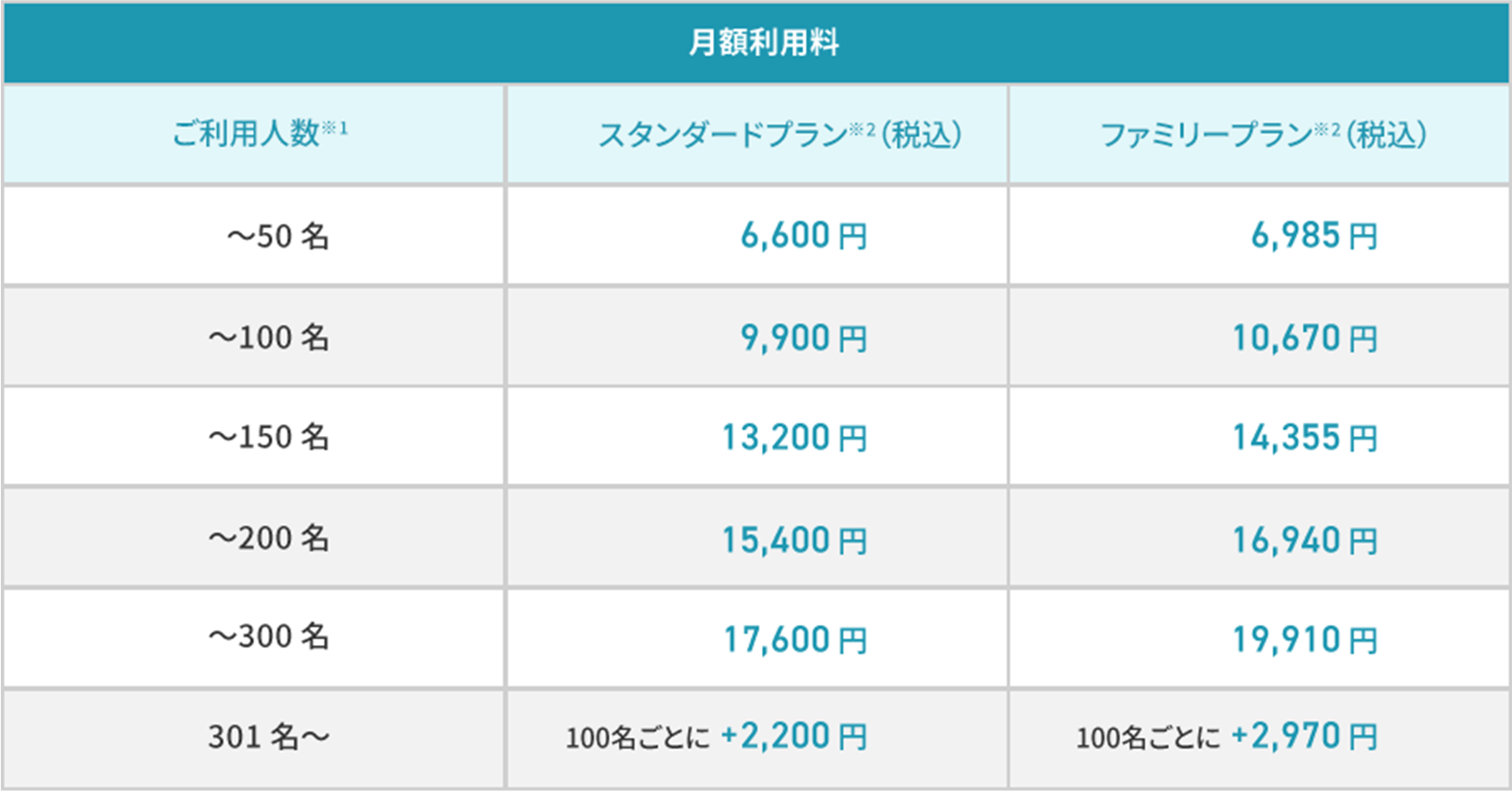 初期費用は無料で、ご利用人数に応じた月額利用料のみお支払いいただきます。