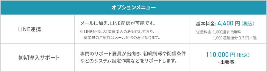 • ※2 スタンダードプランは、従業員とその家族へメール配信するプランです。