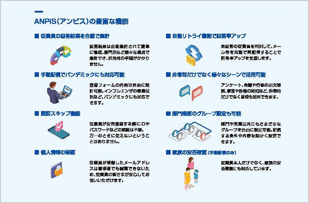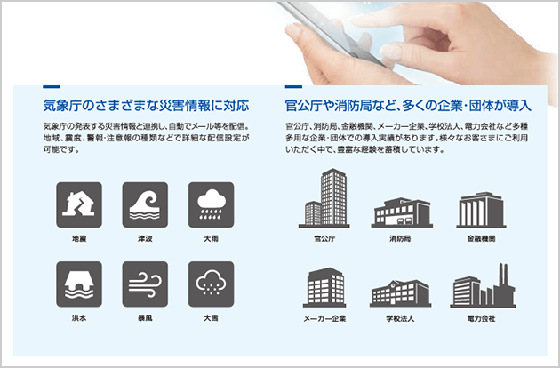 安否確認システム 「ANPiS」 は気象庁と連携し、 災害が発生するとメール等が自動で配信され、