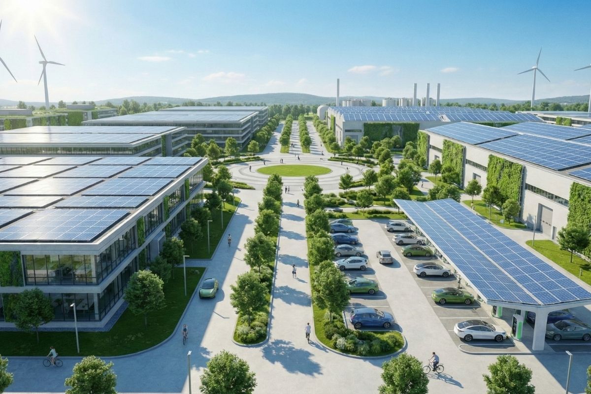 工場の屋上とカーポートに太陽光パネルを設置し、GHG排出量削減