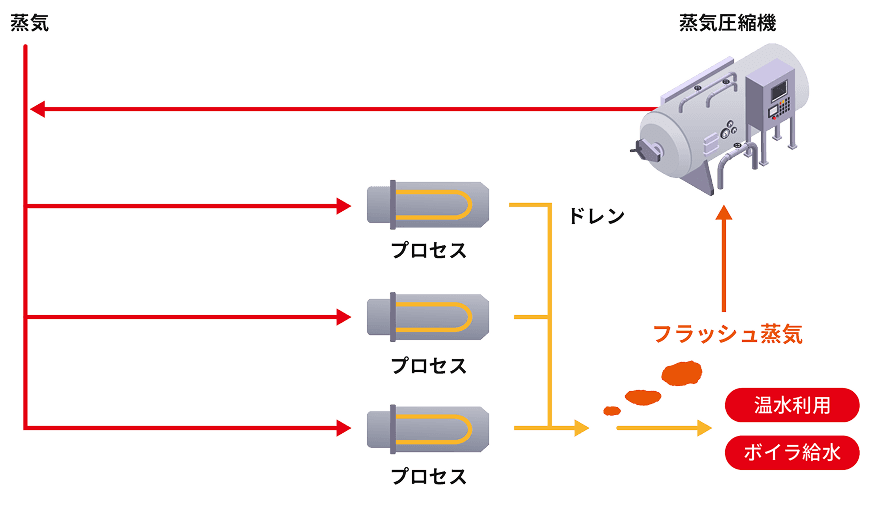 蒸気設備から排出される高温ドレンやフラッシュ蒸気を回収・再利用することで、