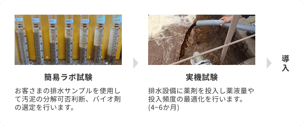 簡易ラボ試験(無償)の段階でバイオ剤の効果を確認できます。